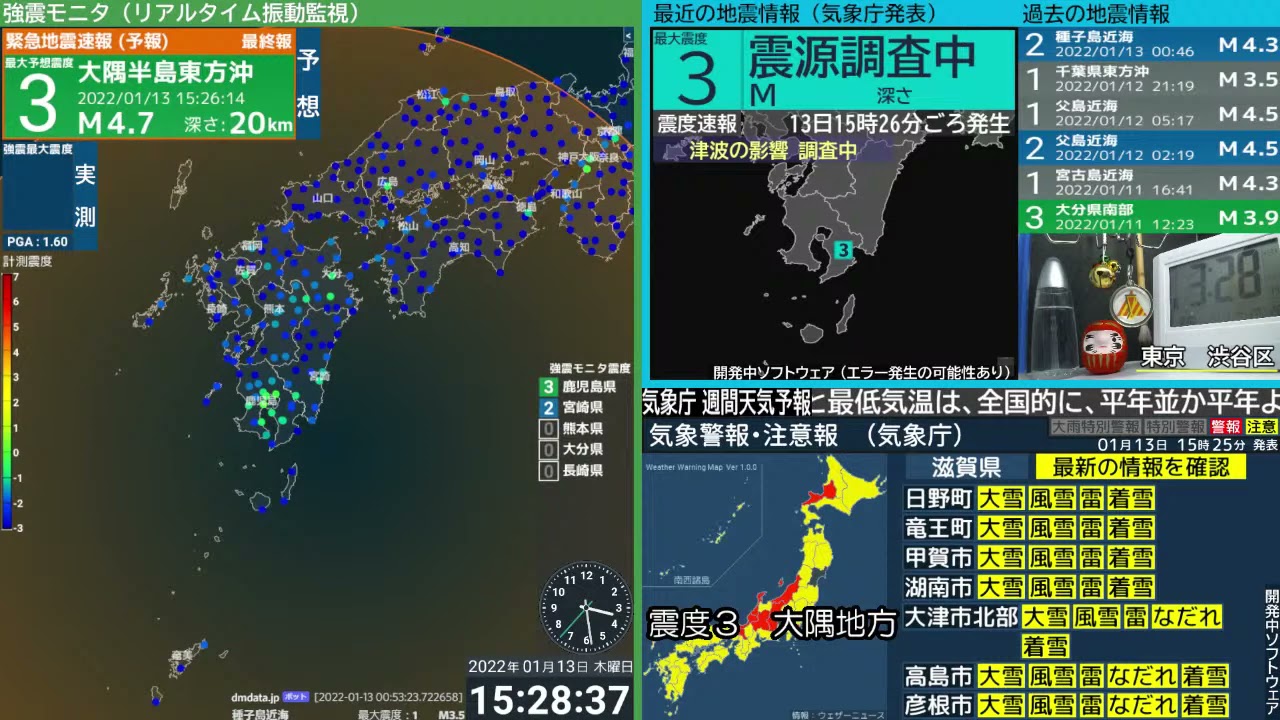 地震速報ライブ(短縮URL) https://bit.ly/3c7YQ1R0:00 切り抜きアーカイブ 0:02 揺れ検知 0:10 緊急地震速報 1:50 震度速報 3:12 震源情報(津波の心配なし) 4:05 各地の震度情報(詳細) 23区5弱5強6弱6強EarthquakejdqJMAJQuakekiwiLIVENewsPGATsunamiアーカイブいまごろつなみトカラニュースプレートマグニチュードみやすいモニタゆれライブライブ地震速報三陸二十三区今付近仙台北海道台風地方地震地震 ライブ地震ライブ地震ライブ配信中地震情報地震最新情報地震速報地震速報 ライブ大津波大津波警報宮城小笠原岩手巨大強震強震モニタ情報振動揺れ放送日本最大最近棒読み気象庁沖縄津波津波情報津波注意津波注意報津波警報海外海岸深さ深層深発災害琴葉発表監視福島緊急緊急地震速報緊急地震速報ライブ群発自作自然見やすい規模観測計測誘発読み上げ近海通り速報連発進路遠地配信開発雨震央震度震度3震度4震度7震源震源情報青森