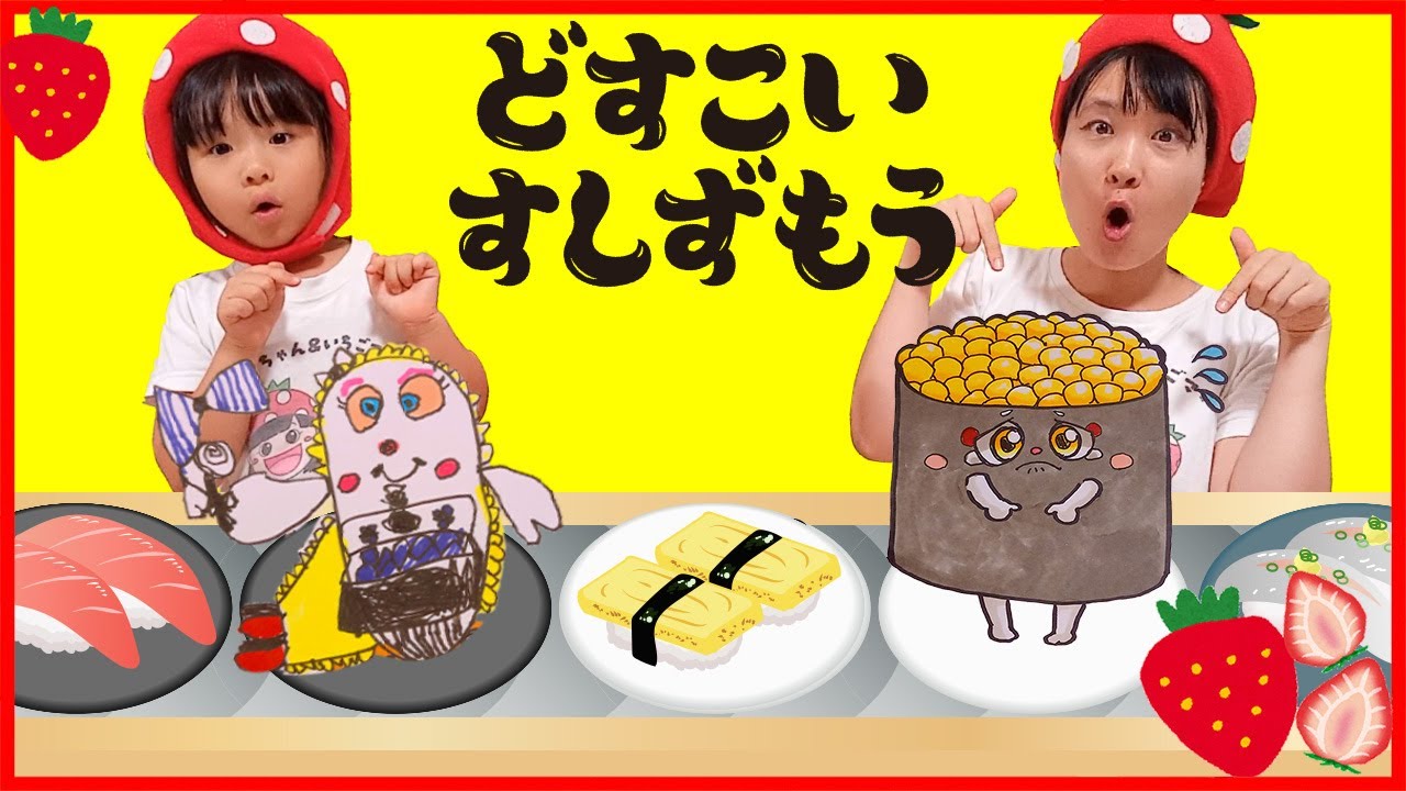 今日はこはるちゃんといちごママがオリジナルの寿司力士をお絵かきするよ♡