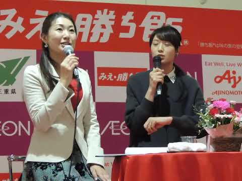 味の素「勝ち飯」とコラボした三重県の食材PRのイベントがありました。鈴木英敬三重県知事と鈴鹿市出身(三重県観光大使)の浅尾美和さんのトークショーより。