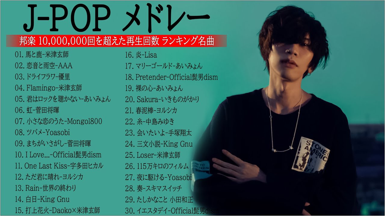 有名曲J-POPメドレー『2022最新版』🎶日本最高の歌メドレー || YOASOBI、あいみょん、優里、米津玄師 、宇多田ヒカル、ヨルシカ ( Music Official 01 )