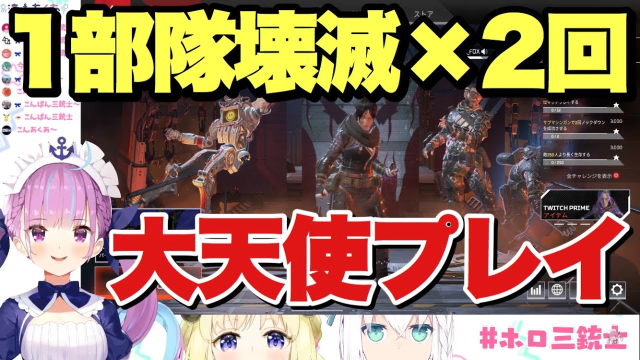 【APEX】1部隊壊滅×2回やってのけるあくあちゃんの大天使プレイ【湊あくあ/白上フブキ/角巻わため】