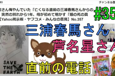 CELEBRITY 2021-09-03 芦名星さん悔やんでいた「亡くなる直前の三浦春馬さんからの電話」突然の別れから1年、母が初めて明かす「娘の死の真相」【Yahoo掲示板・ヤフコメ・みんなの意見】No.357女…