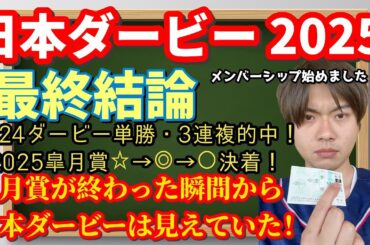 NEWS 2025-05-30 【競馬予想 日本ダービー2025】最終結論!2024ダービー・2025皐月賞的中!皐月賞が終わった瞬間から日本ダービーは見えていた!クロワデュノール・マスカレードボール・ミュージアムマイルの評価は?【…