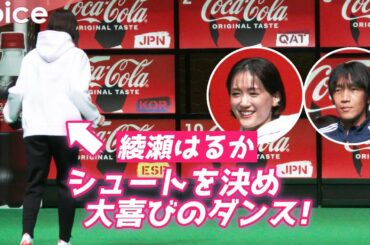 In CELEBRITY 綾瀬はるか、シュート決めた姿が可愛い!喜びのダンス披露!中村俊輔は丁寧にレクチャー:「コカ・コーラ」FIFA ワールドカップ 開催国ボトル発売記念イベント 2022-11-01 綾…