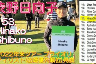 渋野日向子 153. Hinako Shibuno 2022年米ツアープライオリティリスト(出場優先順位)発表