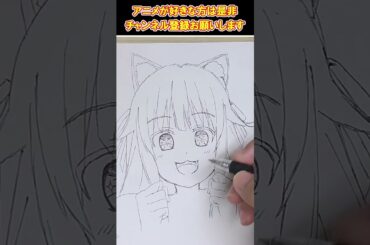 【勇者パーティーを追放されたビーストテイマー最強種の猫耳少女と出会う】カナデを一発描きで描いてみた【一発描き】#Short