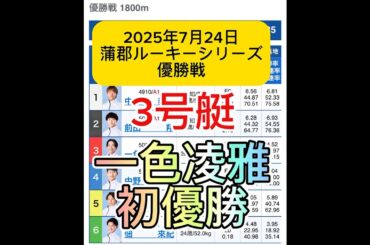 In CELEBRITY 2025年07月24日〔蒲郡12R|優勝戦〕 #競艇 #ボートレース #一色凌雅 #まくり差し #初優勝 #水神祭 #地元戦 #中村泰平 #中野仁照 #道中戦 #万舟 #ルーキーシリーズ 2025-07-24