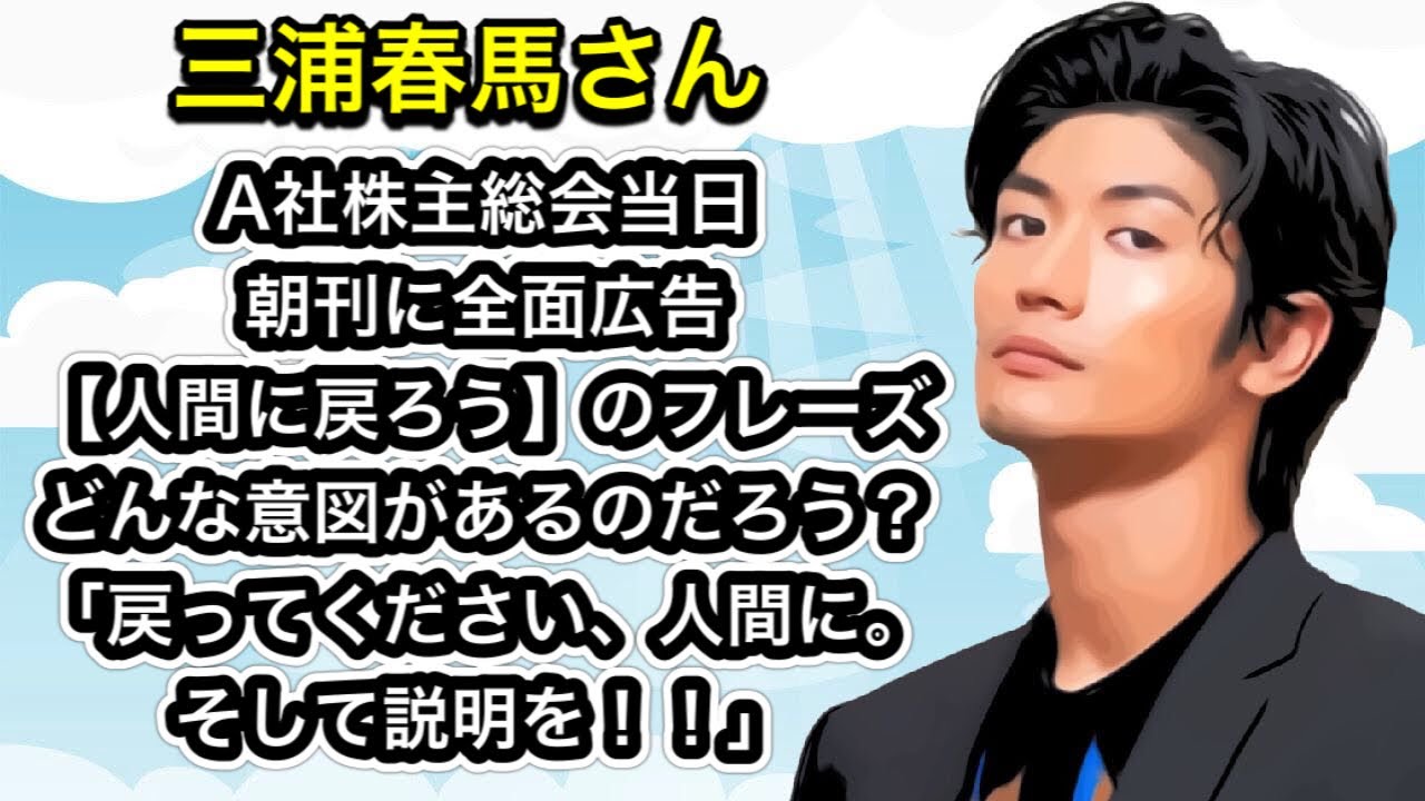 CELEBRITY 三浦春馬さん A社株主総会当日 朝刊に全面広告【人間に戻ろう】のフレーズ なんの意図があるのだろう? 「戻ってください、人間に。そして説明を!!」 2021-06-28 世界はほしいモノにあふれてる セレク…