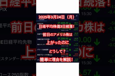 2025年3月24日(月)日経平均株価3日続落!前日のアメリカ株は上がったのにどうして?簡単に理由を解説!