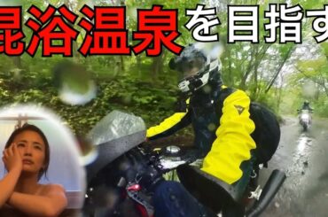 山奥の混浴温泉にはいるため土砂降りで林道を走る!