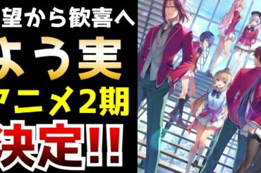 In ANIME 【超絶朗報】原作改変から続編のアニメ化は無理だと絶絶望視されていたあの作品『ようこそ実力至上主義の教室へ』が5年越しとなる待望のアニメ第2期制作決定!!!【ラノベ】【続編アニメ化】【よう実】 2022-02-21 マ…