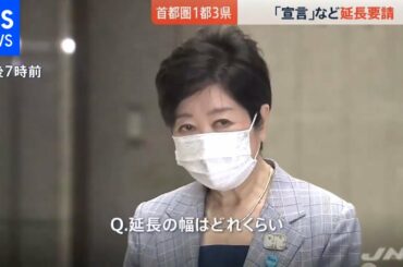 首都圏1都3県「宣言」など延長共同要請、小池都知事「延長幅は1か月」