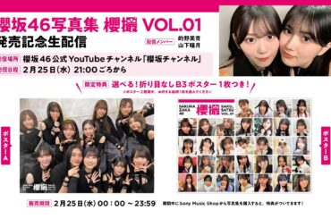 【2月25日21:00頃~】櫻坂46写真集 櫻撮VOL.01発売記念生配信 出演・的野美青/山下瞳月【特典/折り目なしB3ポスター】