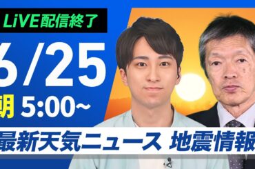 NEWS 2025-06-27 【ライブ配信終了】最新天気ニュース・地震情報 2025年6月27日(金)/広く梅雨明け 熱中症対策を忘れずに〈ウェザーニュースLiVEアフタヌーン・川畑玲/芳野達郎〉【…