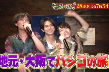 8月28日(水)よる7時54分からの「笑ってコラえて!」は永瀬・西畑・正門!仲良し3人組が大阪でハシゴの旅SP
