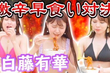 【激辛激痛!?】白藤有華さんと激辛担々麺早食い対決したら完全に放送事故!!【罰ゲーム水着でセクシー尻文字】