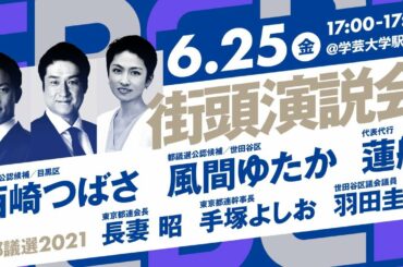 6月25日 17:00 #都議選2021 街頭演説会 @学芸大学駅西口 蓮舫 × 西崎つばさ × 風間ゆたか