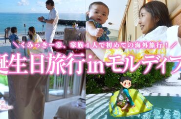 【祝!34歳】家族4人で初めての海外旅行inモルディブ🇲🇻ましゅくんからまさかのサプライズ!旅行におすすめなベビー用品も紹介してます♡
