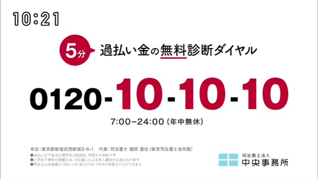 【司法書士法人 中央事務所】過払い金診断 30秒 CM