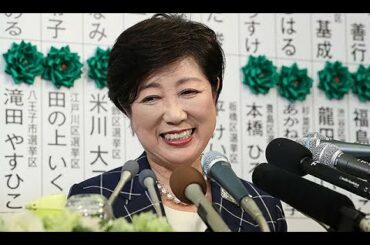 「都民ファーストの会」代表、小池百合子知事会見=第1党確実、自民大敗