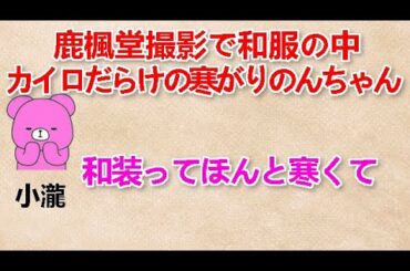 【鹿楓堂撮影で和服の中カイロだらけの寒がりのんちゃん】 小瀧『和装ってほんと寒くて』